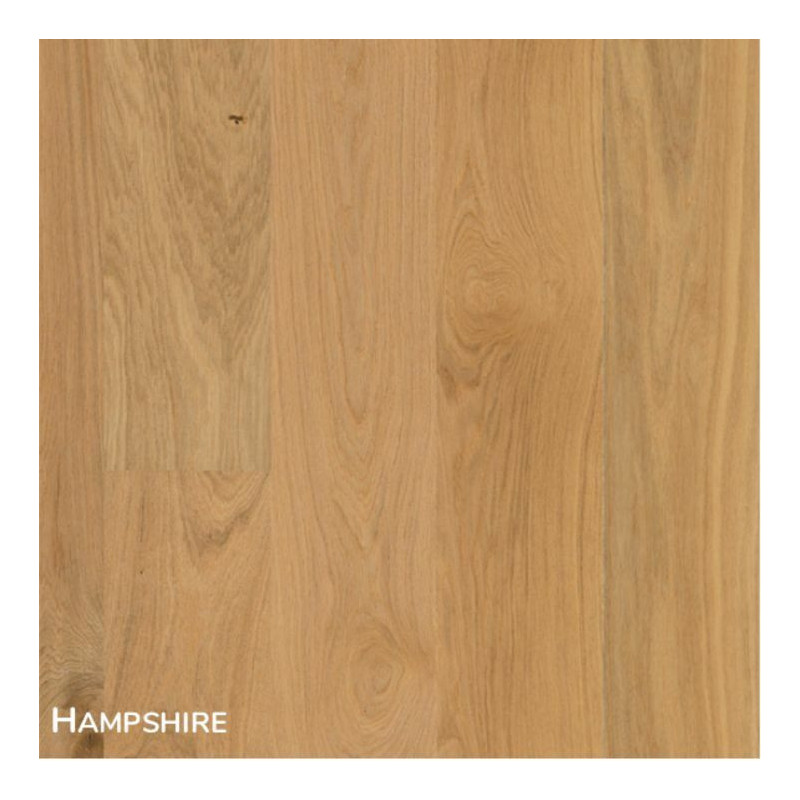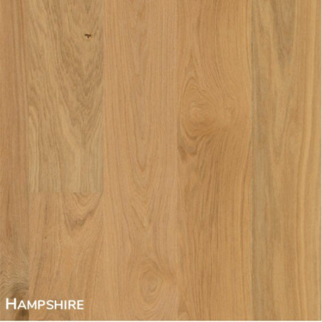 Roble Hampshire Mate es un parquet con un diseño de carácter vivo y rústico en acabado mate. En sus lamas puedes apreciar un tacto acusado y gramático con protuberancias y nudos.